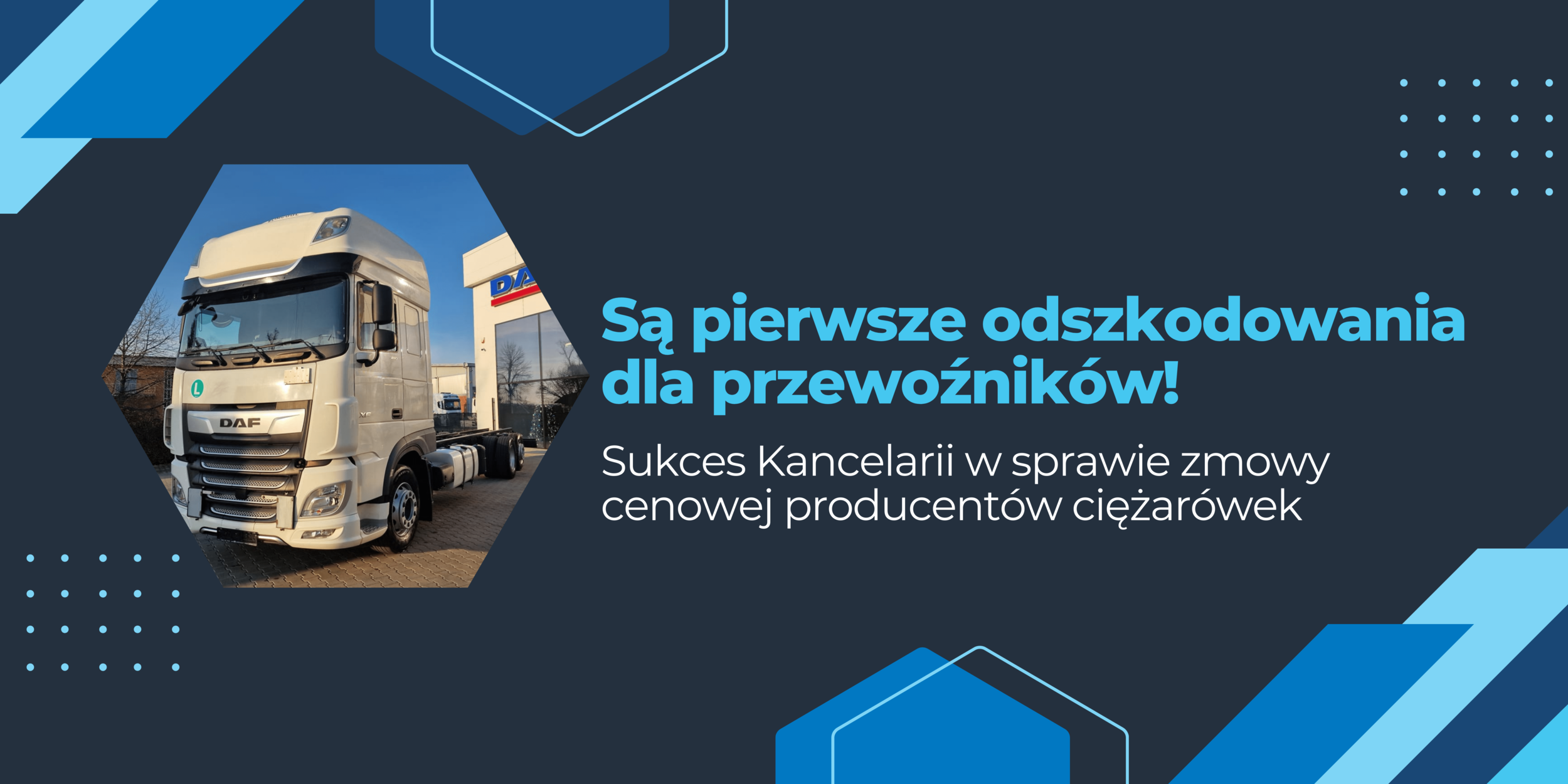 Z ogromną satysfakcją informujemy, że do pierwszych polskich firm transportowych trafiły już przelewy z tytułu odszkodowań za zmowę cenową producentów ciężarówek. Nasi klienci otrzymali globalnie kilka milionów euro. Choć postępowanie trwa już od kilku lat, dziś możemy z pełnym przekonaniem powiedzieć: warto było czekać - realne pieniądze, które wracają do polskich przewoźników. To dopiero początek – kontynuujemy walkę o kolejne odszkodowania. ...